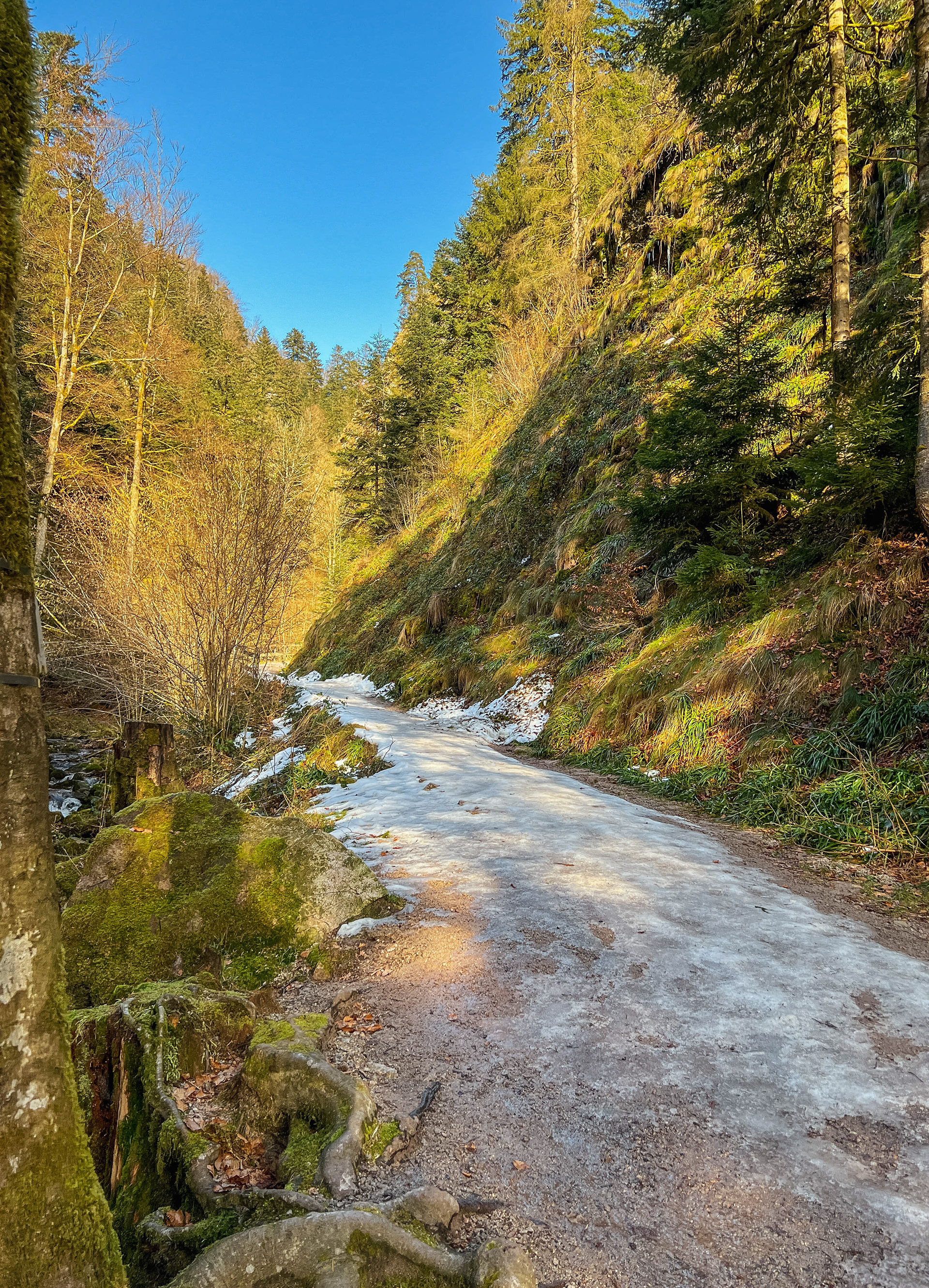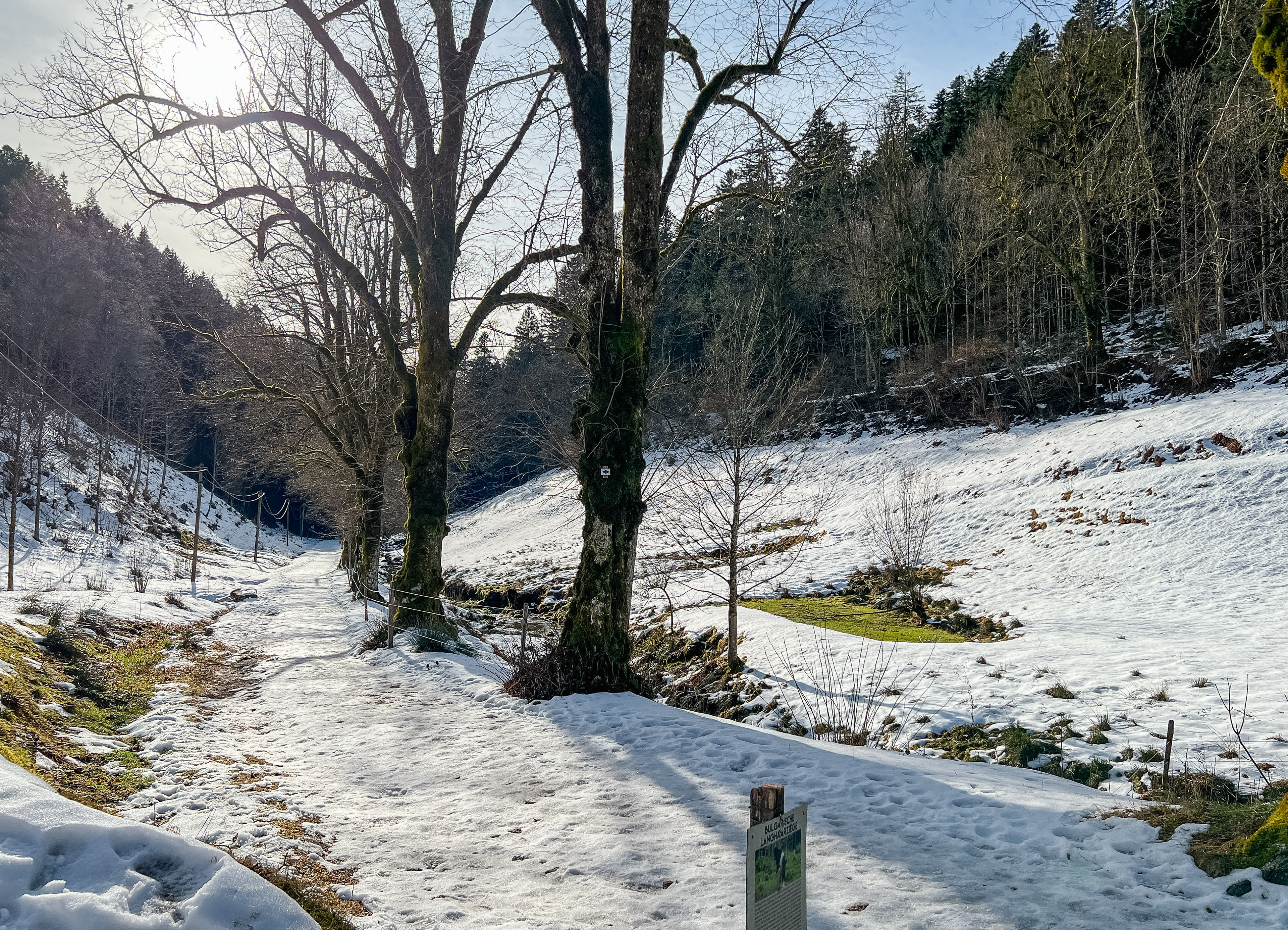 Manche Wanderer halten die Glättehinweise für nett und sinnfrei, laufen weiter und fliegen nur wenige Schritte weiter auf die Nase. War interessant zu beobachten. Passiert ist ihm nichts, er und seine Begleitung sind rutschend und stolpernd weitergezogen.